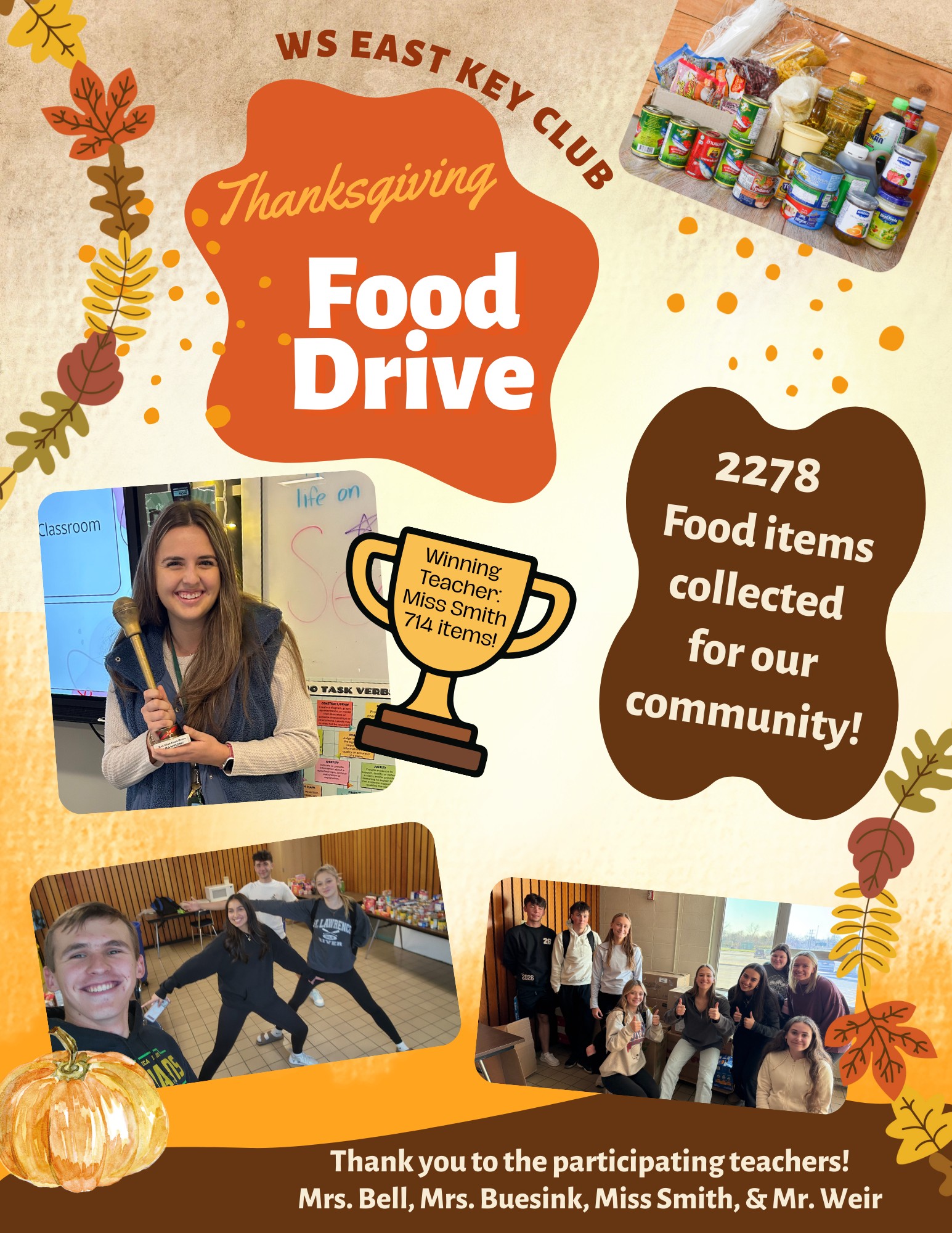 From November 5th until November 20th, East Senior High School's Key Club collected 2278 food items to support our community! Thank you to all who contributed! Click the title for more.