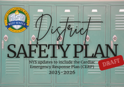 The 2025-2026 District Safety Plan has been published for public review and comment for 30 days beginning on December 8, 2025 in accordance with the NYS updates to include the Cardiac Emergency Response Plan (CERP) - Appendix III of the District Plan. Please click the title above to be directed to the drafted plan. After reviewing should you have any comments, please submit them to wscsdquestions@wscschools.org. Thank you!